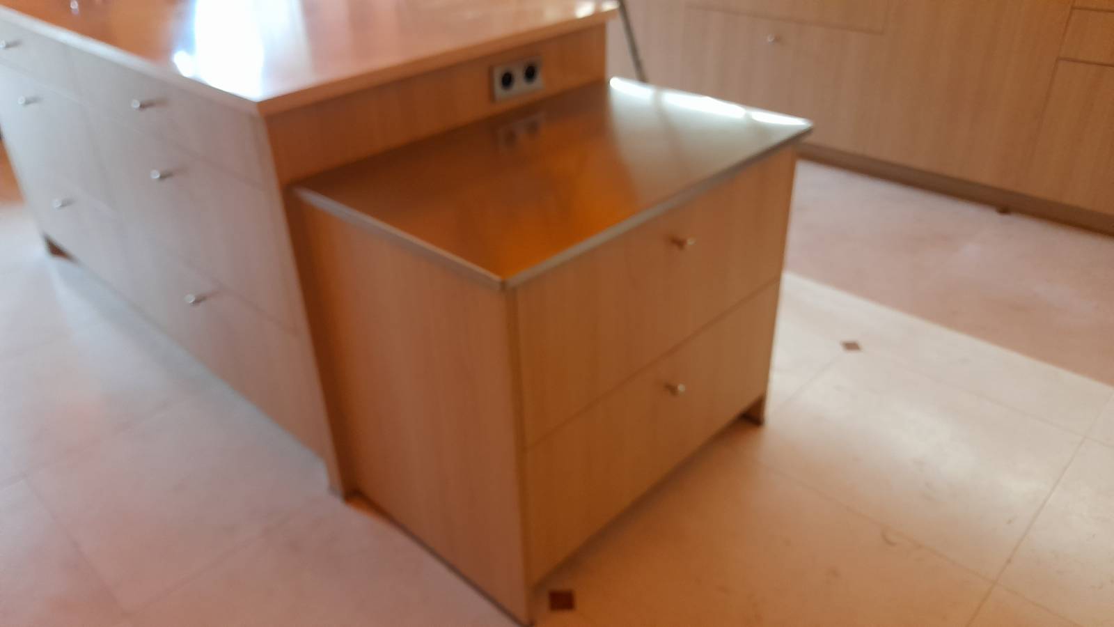 Le coin petit déjeuner offre tout l'espace nécessaire pour accueillir cafetière, grille pain, bouilloire et théière. Il est équipé de meubles bas permettant de stocker la vaisselle et les denrées.