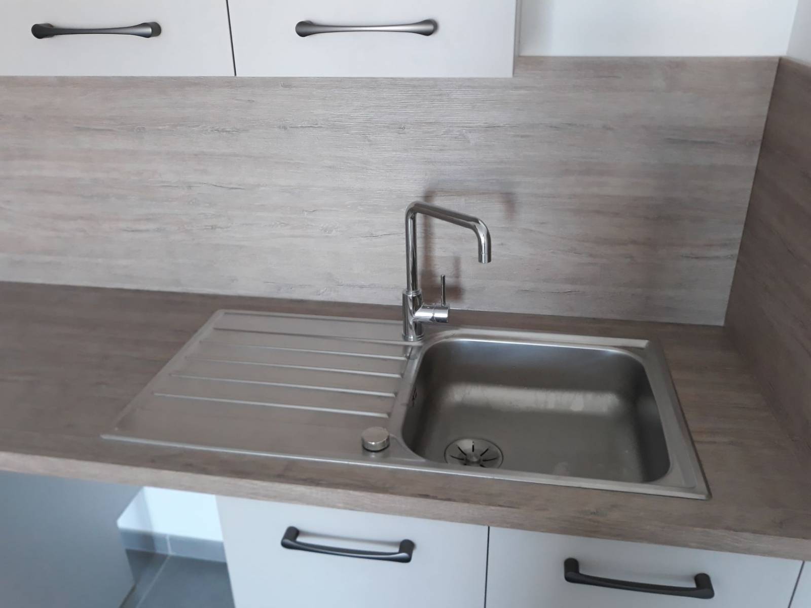 L'évier, en inox décor, est un gage de longévité car très peu sensible aux éponges à gratter verte. Les dimensions de sa cuve, 100 cm x 50 cm, sont les plus grandes du marché pour un évier 1 bac + un égouttoir.