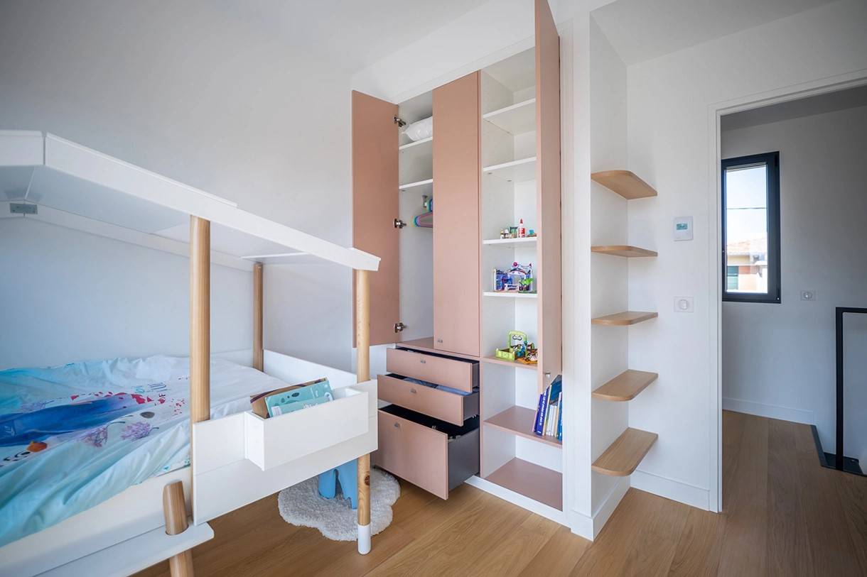 Fini les vêtements qui s’accumulent et les jouets qui débordent : grâce à nos solutions de rangement sur mesure, chaque objet trouve naturellement sa place. Placards intégrés, étagères modulables, penderies astucieuses ou tiroirs dissimulés — nos créations allient esthétique et praticité pour offrir une chambre toujours ordonnée et spacieuse.