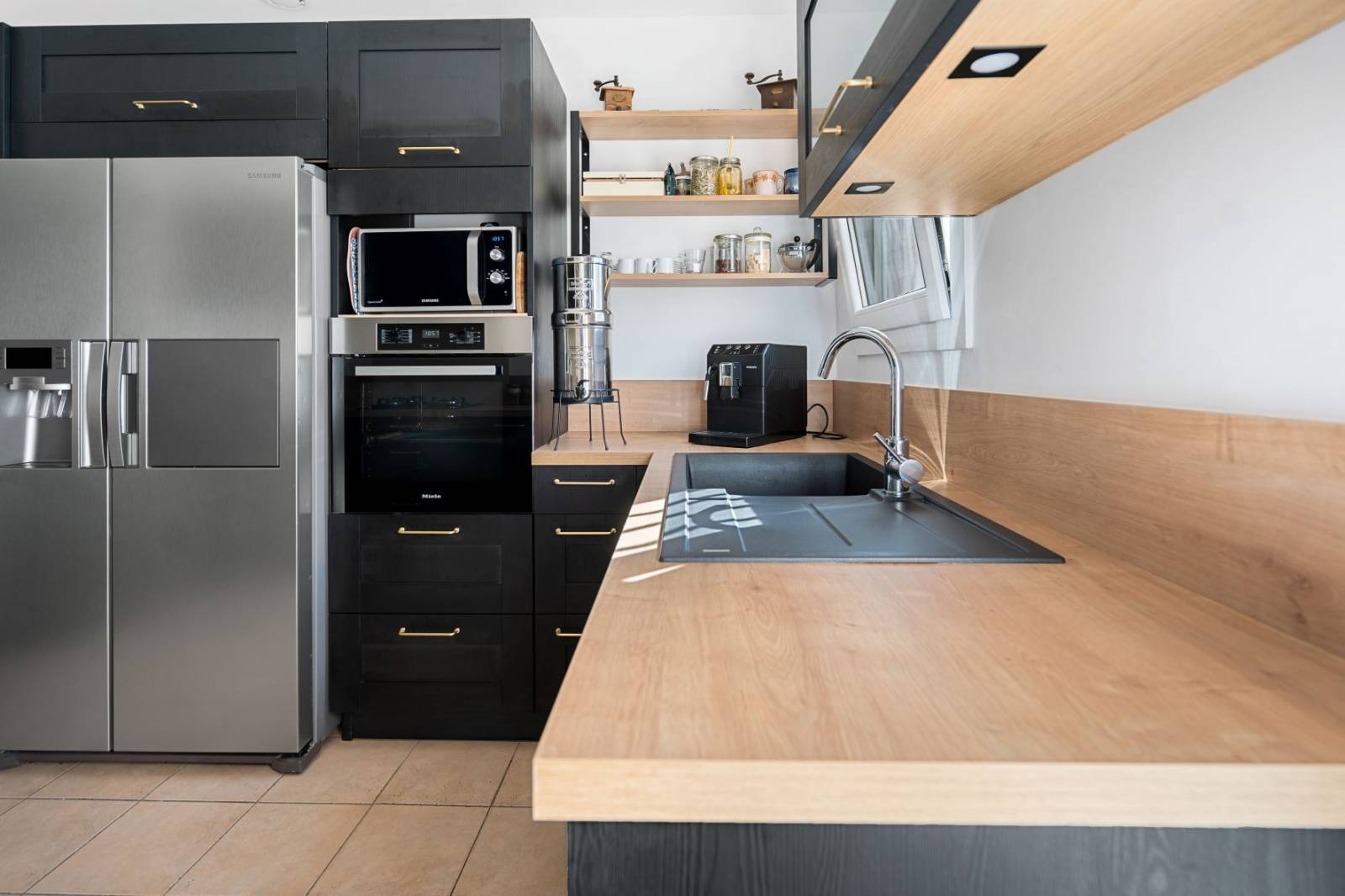 Réalisation d'une cuisine mélaminé aspect bois sur cadre noir à Châteauneuf-le-rouge (13)